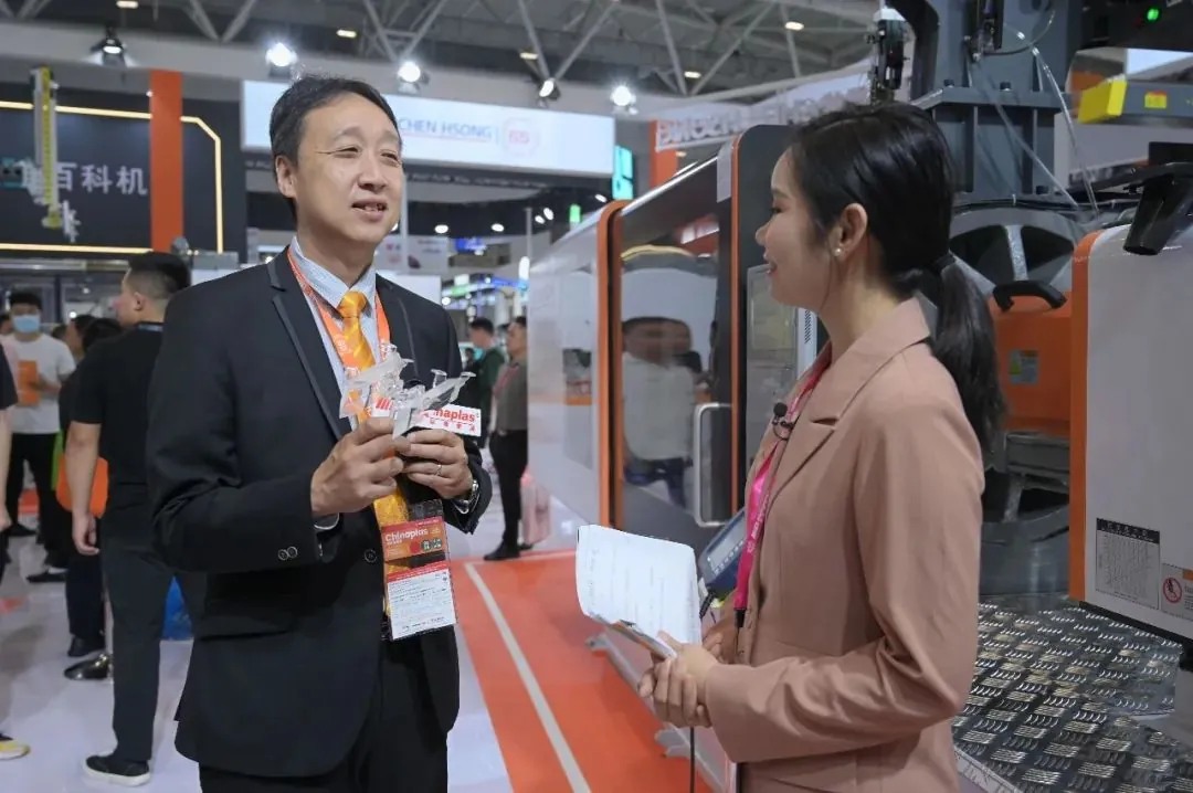 震雄集团执行董事钟效良在接受官方直播采访时说到,此次CHINAPLAS 2023正值震雄65周年庆典,是震雄焕新升级后首次亮相的大型国际展会,震雄尤为重视和期待。