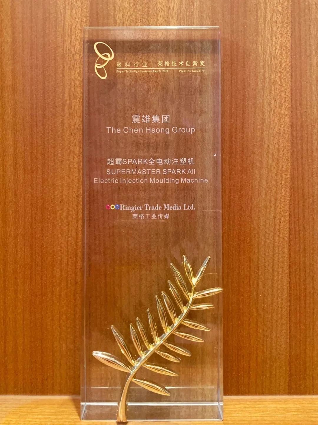 63 年来,震雄集团不断在产品定位、设计研发等各个环节积极修炼内功,到 2021 年,震雄集团各大产品已获取了超 100 个国内外奖项,以强劲的产品创新力,屡创行业标杆,2021 年,更是荣获超霸 SPARK 全电动注塑机塑料行业荣格技术创新奖!