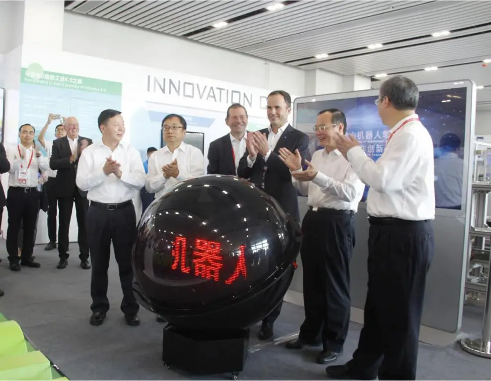 2017年10月12日至15日,第三届广东国际“互联网+”博览会在佛山潭洲国际会展中心盛大举行。本次博览会云集众多IT及工业领域高新产品及技术现场献艺,由华南智能机器人研究院与菲尼克斯(中国)投资有限公司、震雄集团联合建设的 “工业4.0示范线”也在本次博览会首次亮相,成为最抢眼的智能创新科技秀之一。工信部信息化和软件服务业司司长谢少锋、广东省人民政府副省长袁宝成、中共佛山市委书记鲁毅、佛山市人民政府市长朱伟等领导嘉宾参加了启动仪式并参观该套工业4.0示范生产线。