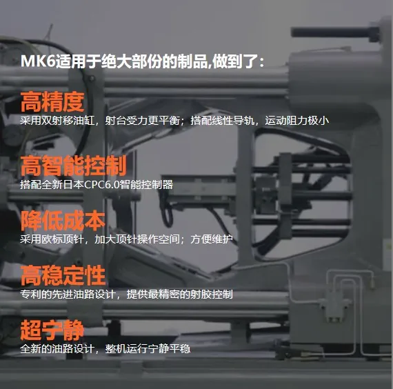 可润达与震雄合作的 MK6 伺服精密注塑机,主要用于生产手机镜头塑料件、内嵌精密件、组装周转件等手机塑料配件。这款采用日本顶尖技术的超级注塑机王者,以其”快,准,稳“的特性服务于全球注塑市场。