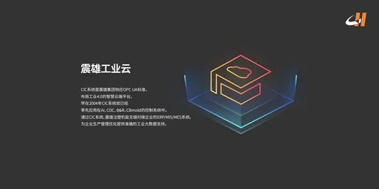 三、CIC(Chen Hsong Industrial Cloud):“震雄工业云”是震雄布局人工智能注塑装备的工业大数据基站。通过 IOT 注塑机组网收集注塑机使用过程中的工业数据,基于 UGC 数据汇聚和算法提升,并引用人工智能引擎,就能找出注塑机控制电脑与制品品质间的非线性、非逻辑关系,从而可以为每一台注塑机、每一套模具的性能适配和功能调节提供最优化的解决方案。