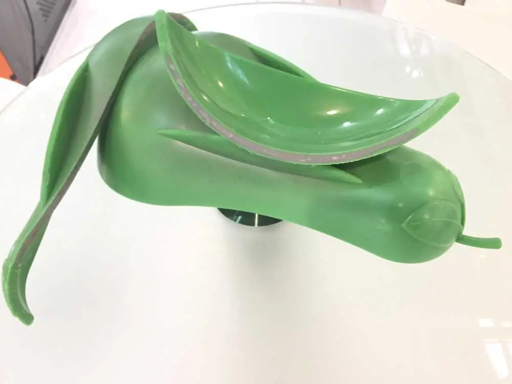 客户们对 TP 系列二板机给予了客观的肯定,认为其突出的稳定性具有行业优势,而震雄“注塑机之王”—MK6 系列伺服驱动注塑机采用了 CARBON-NEUTRAL 减少碳排放的环保方式,在现场演示生产一款厚度为8mm 的水果盘,内层采用 PP 回收料,外层采用高光泽 PP 新料,富有质感的造型令到场客户无不拍手叫好, 环保的同时又节省成本。 MK6 系列为大家呈现何为肉眼可见的精密、高速、稳定。